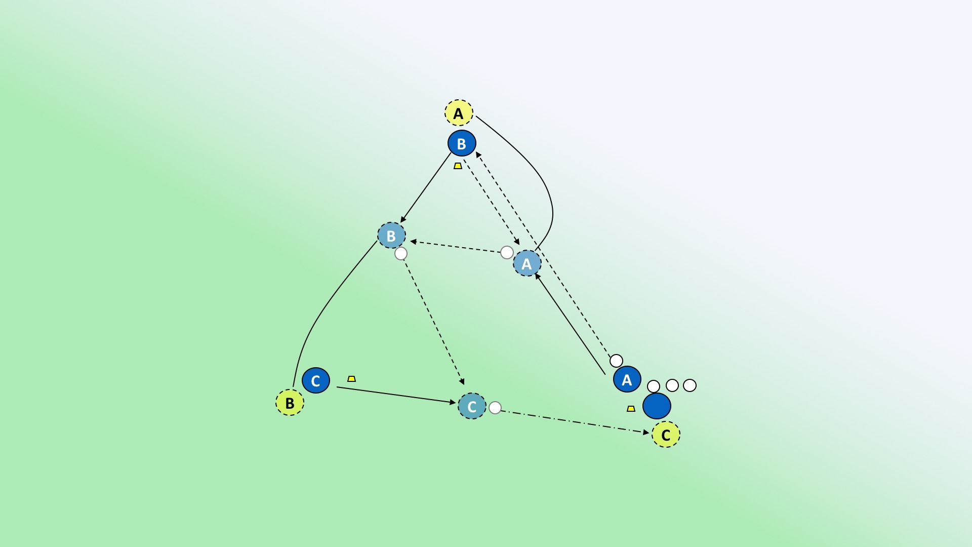 - Que el timing del desmarque sea adecuado y que el poseedor del balón no pase la pelota si el futuro receptor está al lado del cono.